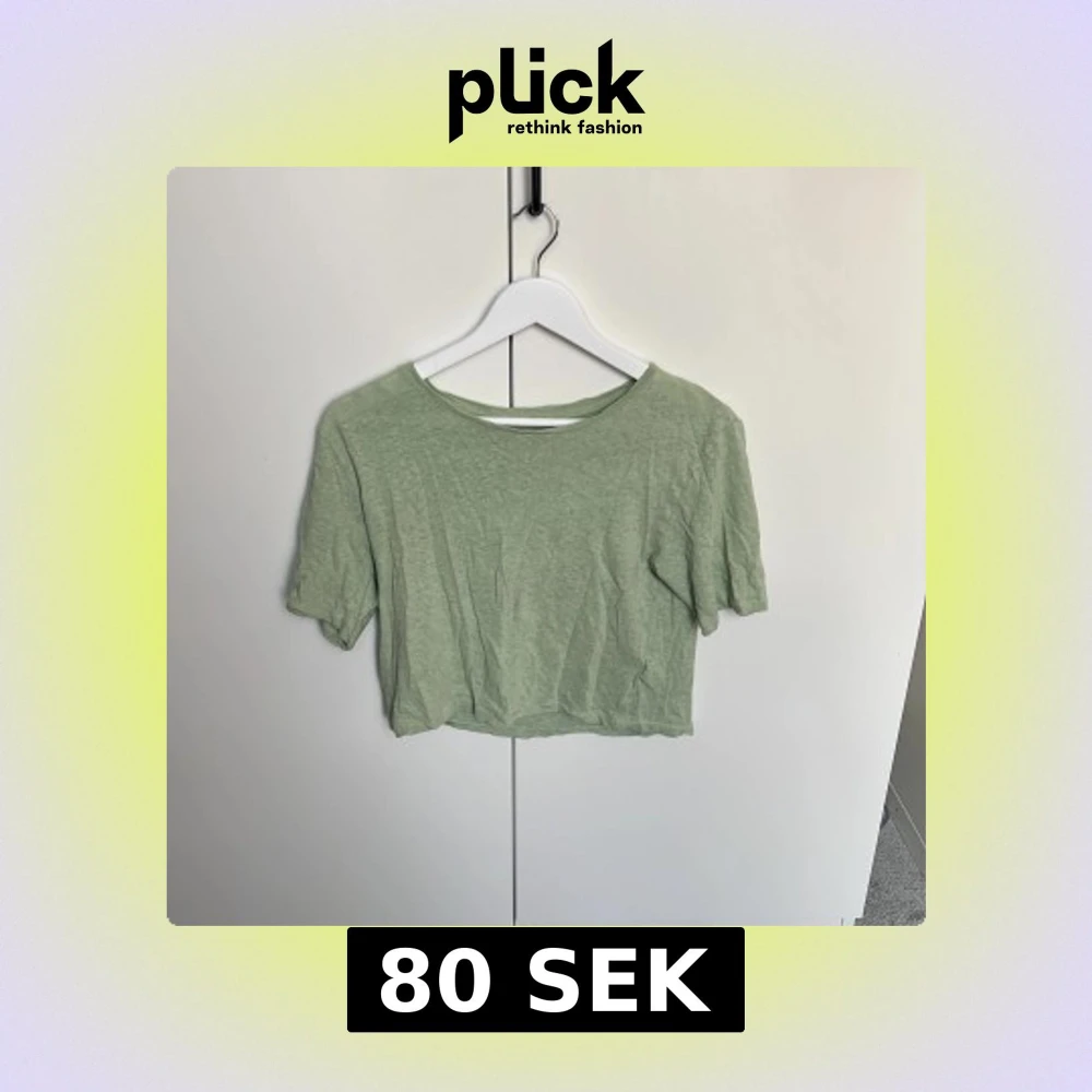 Enkel och stilren ljusgrön croppad topp från Lindex. T-shirten har korta ärmar, rund halsringning och är tillverkad i mjuk bomull. Perfekt för en avslappnad look och lätt att matcha med jeans eller kjol.