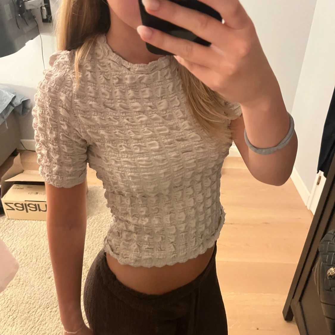 Säljer en beige croppad topp med kort ärm. Köpt på Lindex. Har inga defekter. Skriv för fler frågor och funderingar. Köpt för 300kr