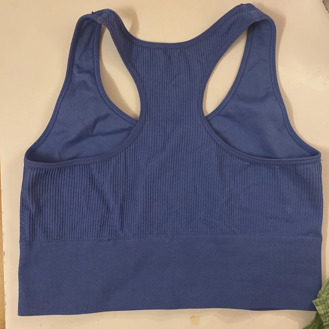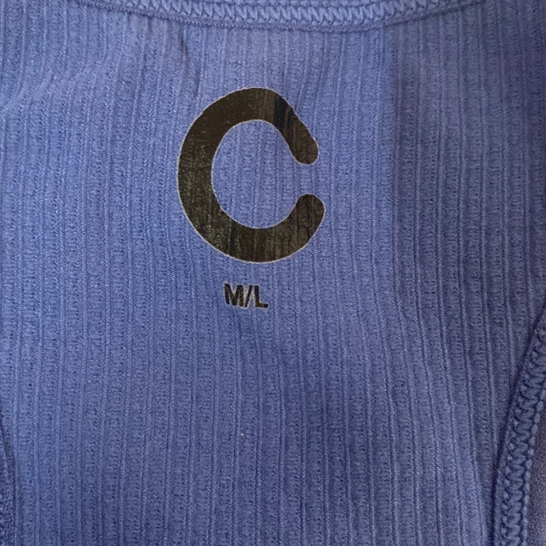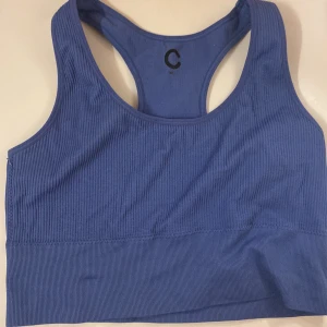 Blått Croppat linne träningsmaterial i storlek M/L frn Cubus . Aldrig användt säljes för 115kr.