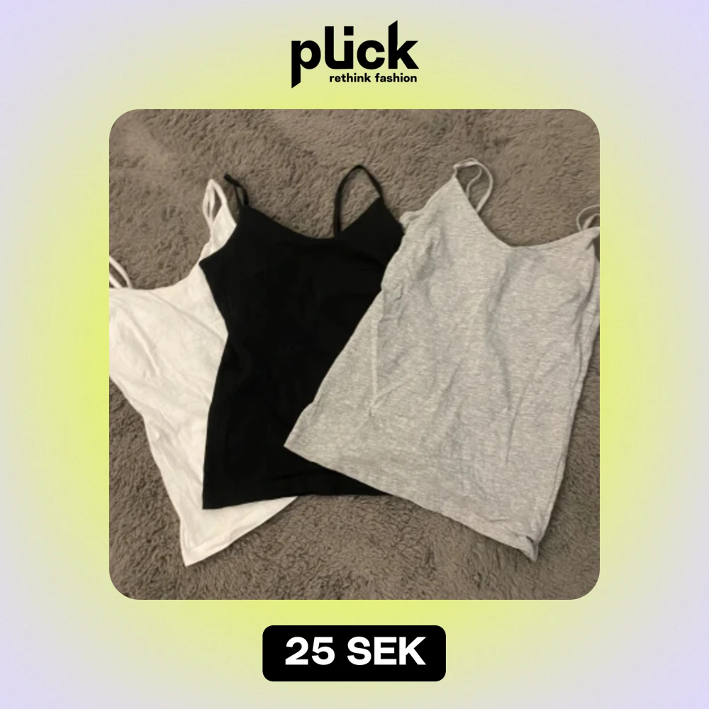 Säljer tre enkla linnen i vitt, svart och grått. Perfekta för vardagsbruk eller som basplagg. De har smala axelband och gjorda i ett mjukt och bekvämt material. svarta-xs. gråa-s. säljer 1 för 25, 2 för 45 OBS DEN VITA ÄR SÅLD