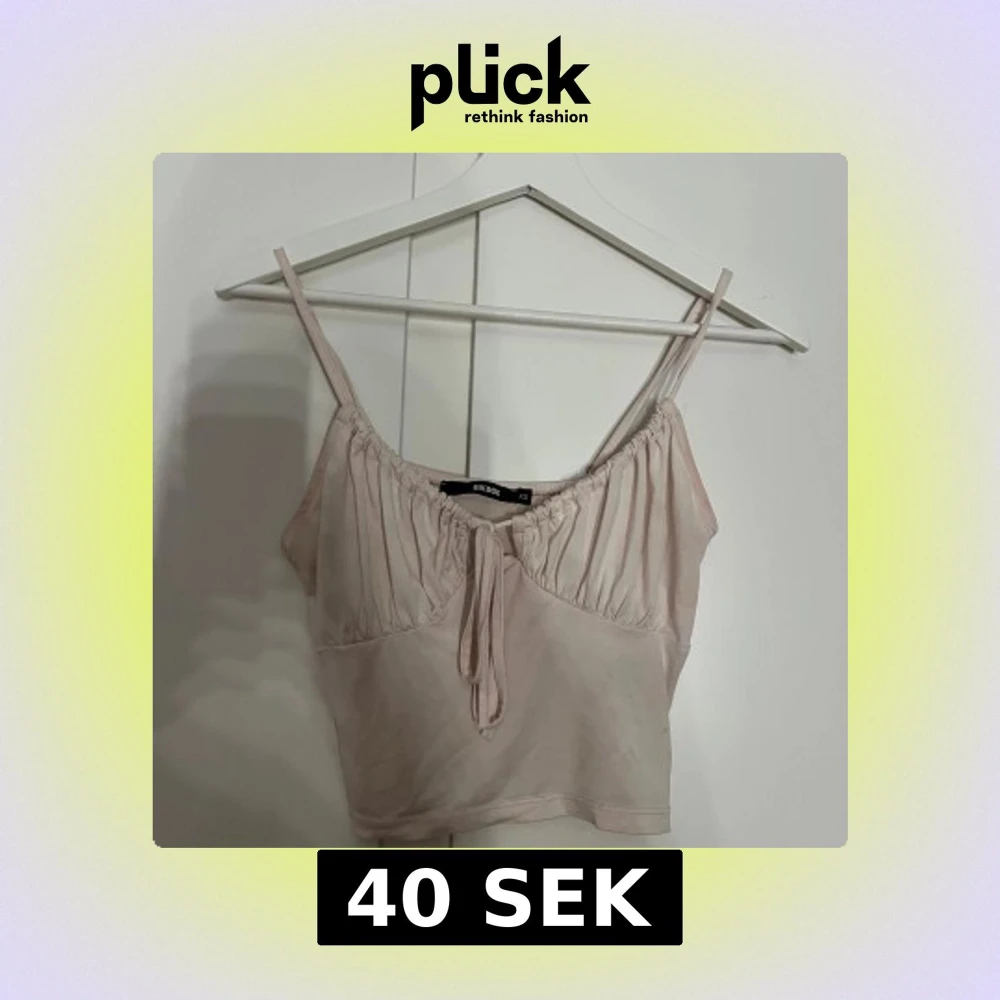 Säljer en söt linnetopp från Bik Bok med smala axelband och knytning framtill. Perfekt för varma dagar eller som ett lager under en jacka. Toppen har en mjuk och skön känsla.