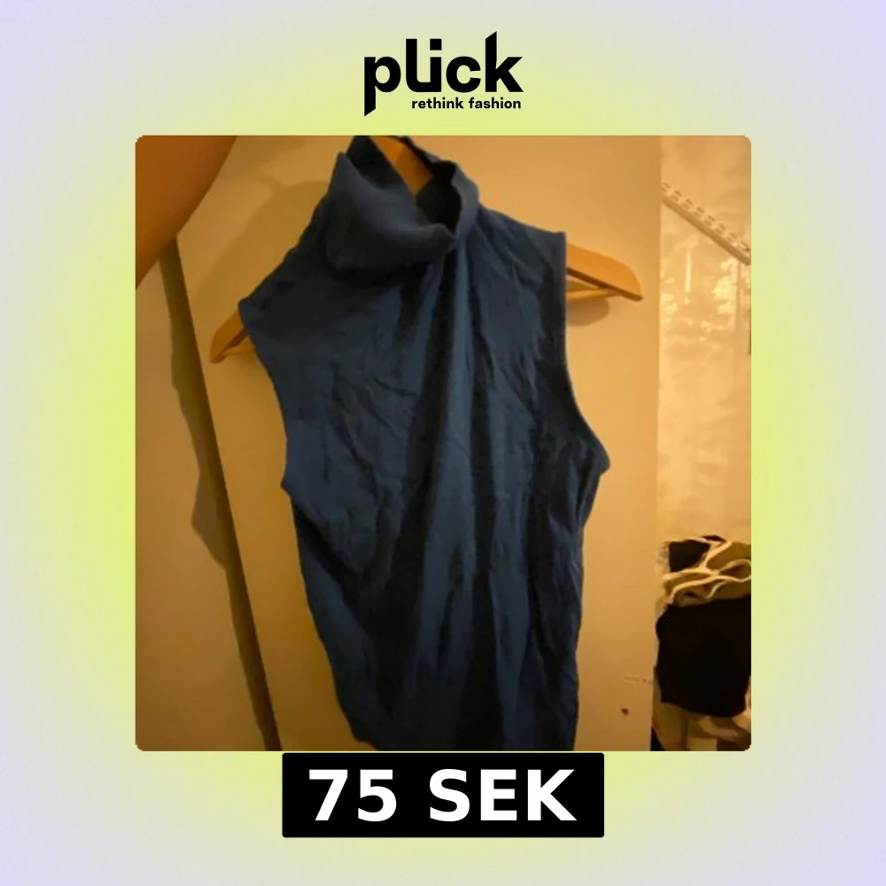 Snygg blå ärmlös polotopp med hög krage. Perfekt för lager-på-lager eller som den är under varmare dagar. Enkel och stilren design som passar till många olika outfits.