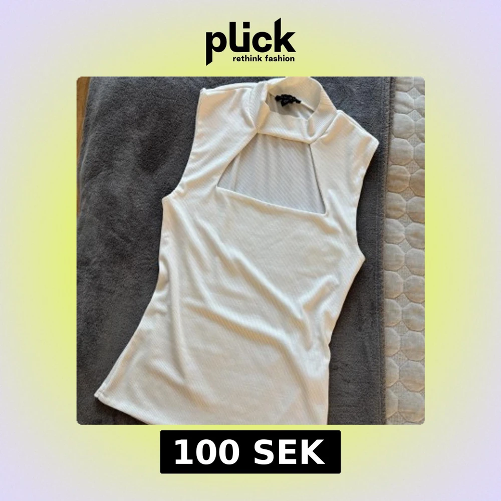 Säljer en vit ribbad topp från Amisu New Torker i storlek M. Toppen är ärmlös med hög hals och en snygg cut-out detalj framtill som ger en modern vibe. Perfekt att styla med jeans eller kjol för en trendig look.