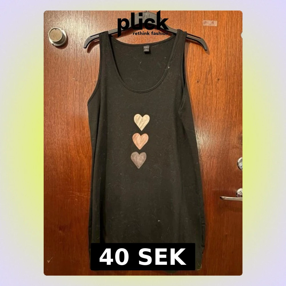 Svart ärmlös linnetopp från SHEIN i storlek M. Framtill finns tre hjärtan i olika färgtoner: beige, ljusbrun och grå. Toppen har rund halsringning och är tillverkad i mjukt syntetmaterial. Perfekt för sommarens alla dagar.