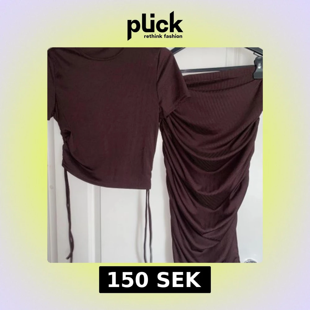 Säljer mitt bruna ribbade set. En croppad kortärmad topp snörning i sidorna och en matchande kjol.