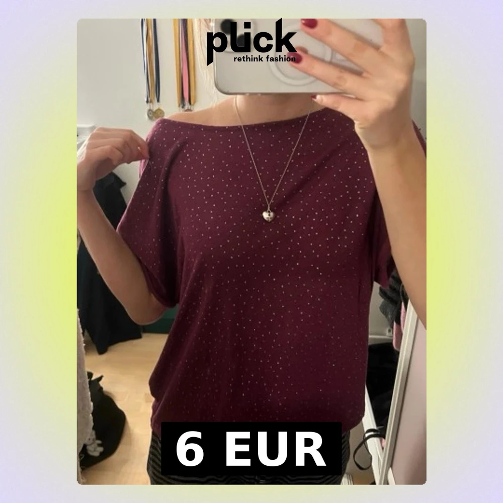 Säljer en topp med små glitteriga prickar. Färgen är en varm lila.
