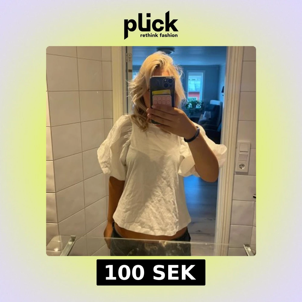 Säljer en vit blus från Love M i storlek M. Blusen har riktigt stora puffärmar och en rak, lite croppad passform. Tillverkad i bomull, perfekt för dig som vill ha en trendig och luftig topp med statement-ärmar.