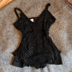 Svart virkad topp. Jättefin! Storlek L men passar fint M.