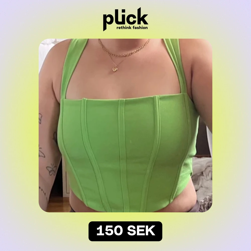 Säljer en snygg grön korsett med breda axelband och cool snörning i ryggen. Perfekt för en festlig kväll eller när du vill sticka ut lite extra. Den har en tight passform som framhäver figuren.