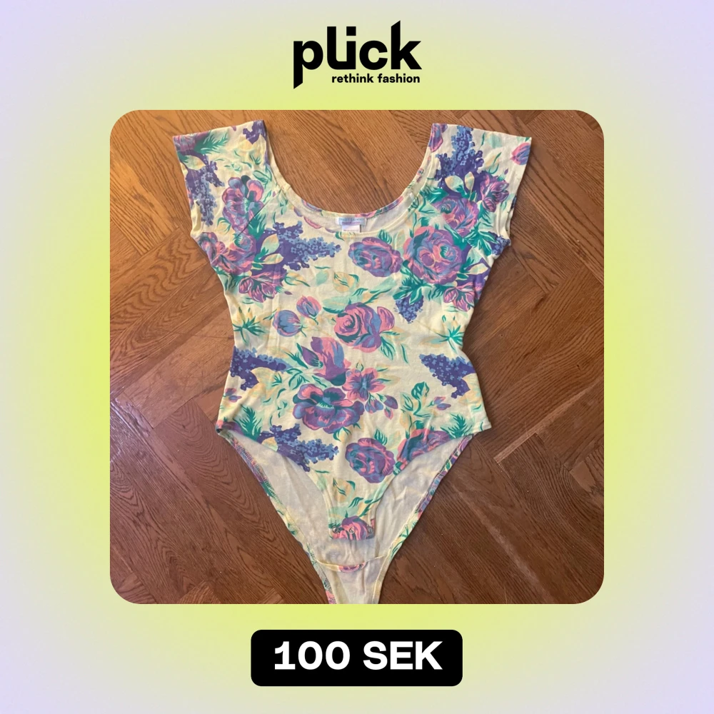 Säljer en superfin blommig body från Sweet Laundry i storlek M. Den har en härlig mix av rosa och lila blommor på en ljusgul bakgrund. Materialet är mjukt och stretchigt med 95% bomull och 5% elastan. Perfekt för sommardagar eller en festlig kväll! 🌸