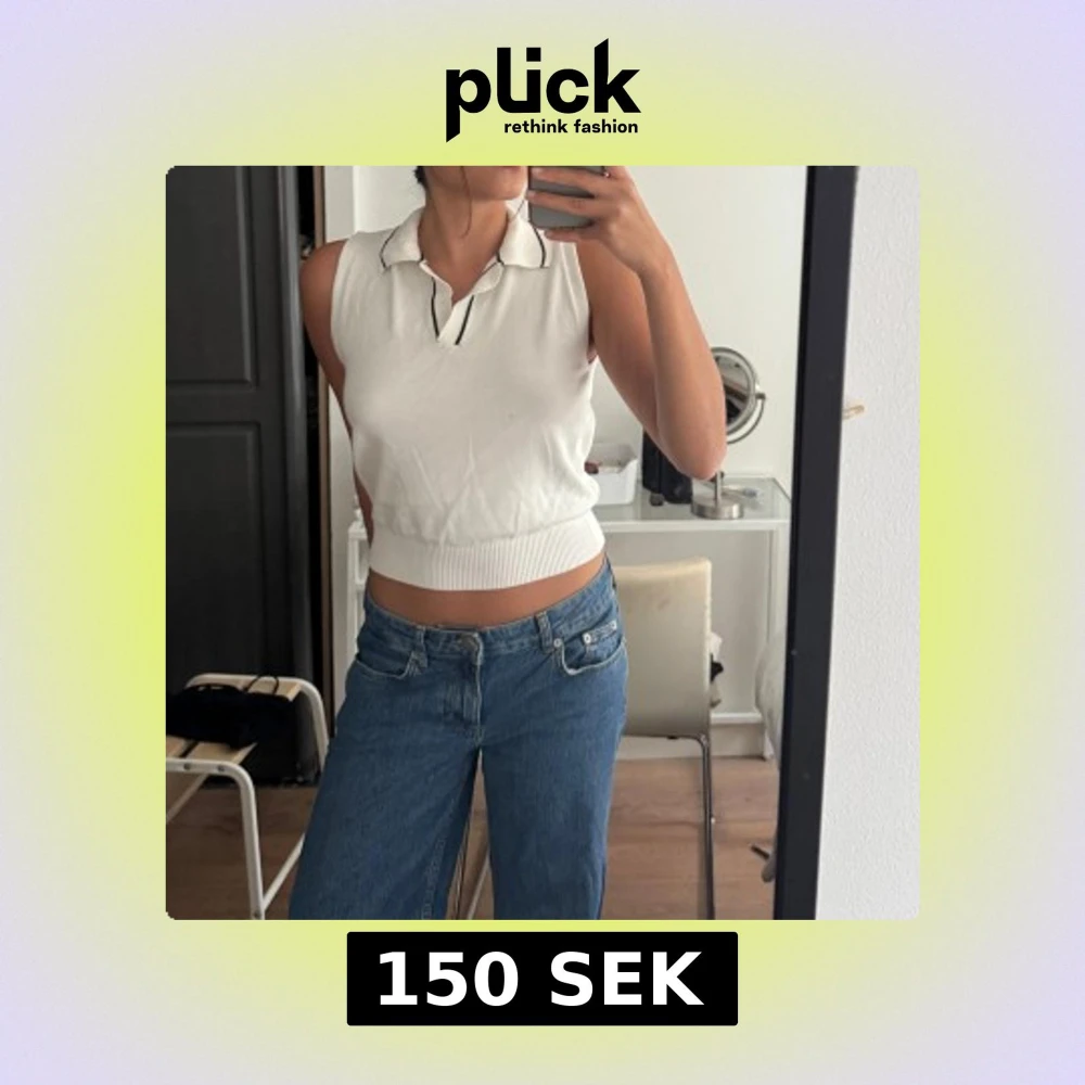 Säljer en vit ärmlös pikétröja från Mango med klassisk krage och svarta kontrastdetaljer längs kragen. Tröjan är croppad och har ribbad nederkant, perfekt för en clean och sportig look. Superfin till jeans eller kjol!