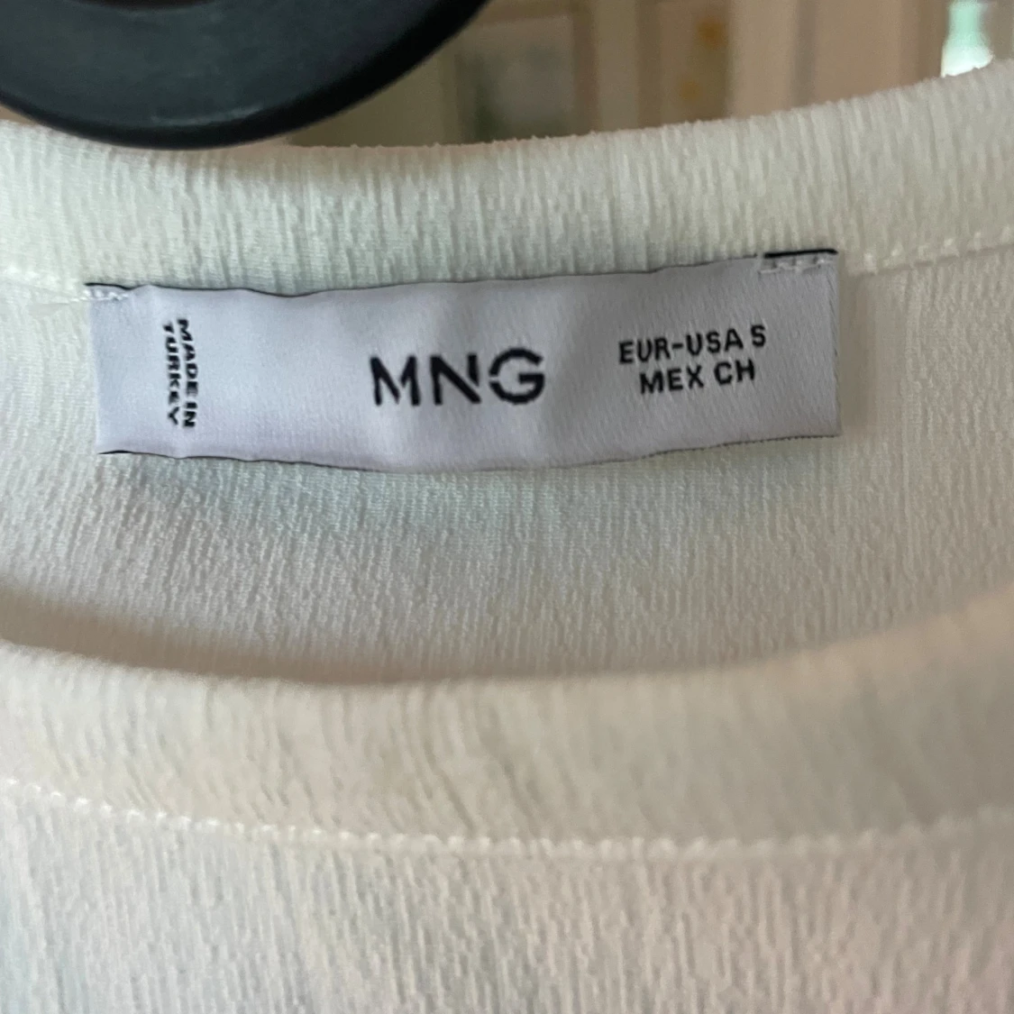 Säljer en helt ny aldrig använd vit topp från Mango i storlek S. Toppen är ärmlös med rund hals och har en lätt strukturerad yta som ger en snygg touch. Perfekt att matcha med jeans eller kjol för en clean look. Materialet känns mjukt och luftigt.