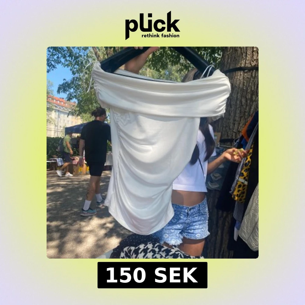 Snygg vit tubtopp med draperad design och offshoulder-look. Toppen är axelbandslös och har en cool, lite oversized passform med snygga rynkade detaljer på sidorna. Perfekt för att skapa en trendig och stilren outfit.