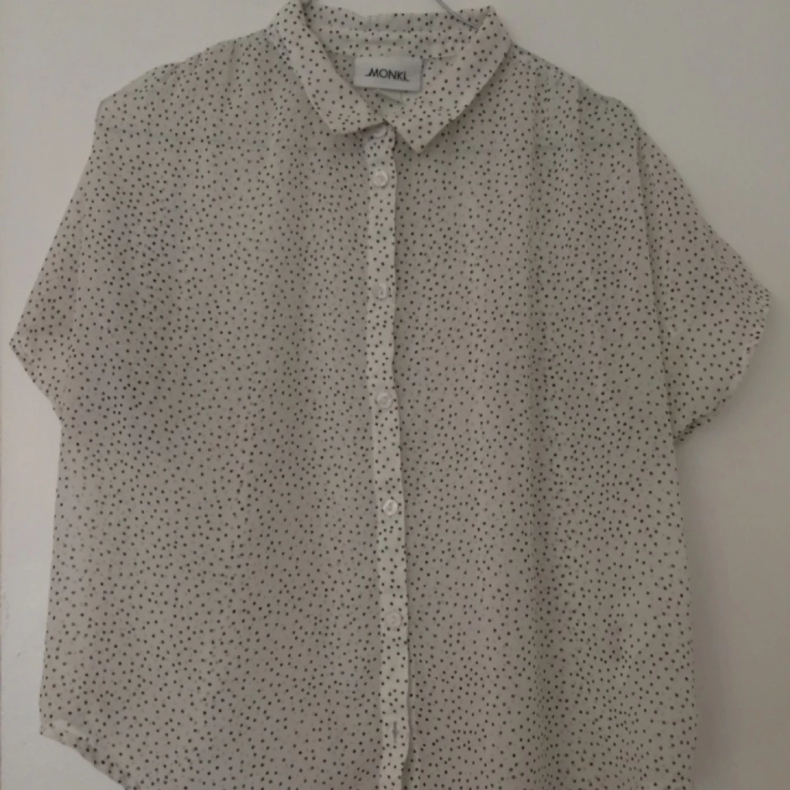 Söt sommartopp från MONKI. Sparsamt använd. Vit/transparent med svarta prickar.