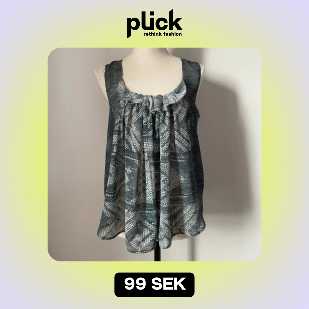 Blå mönstrad blus! 🩵 Volang upptill, tunnare material. Utan storlek, men skulle säga S/M :)