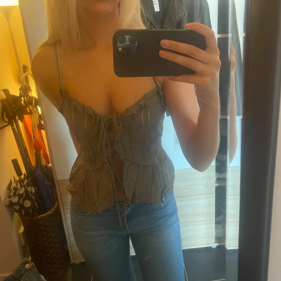 Jättefint mörkgrönt linne från zara, endast använt 1 gång. Säljer då det inte kommer till användning. ✨