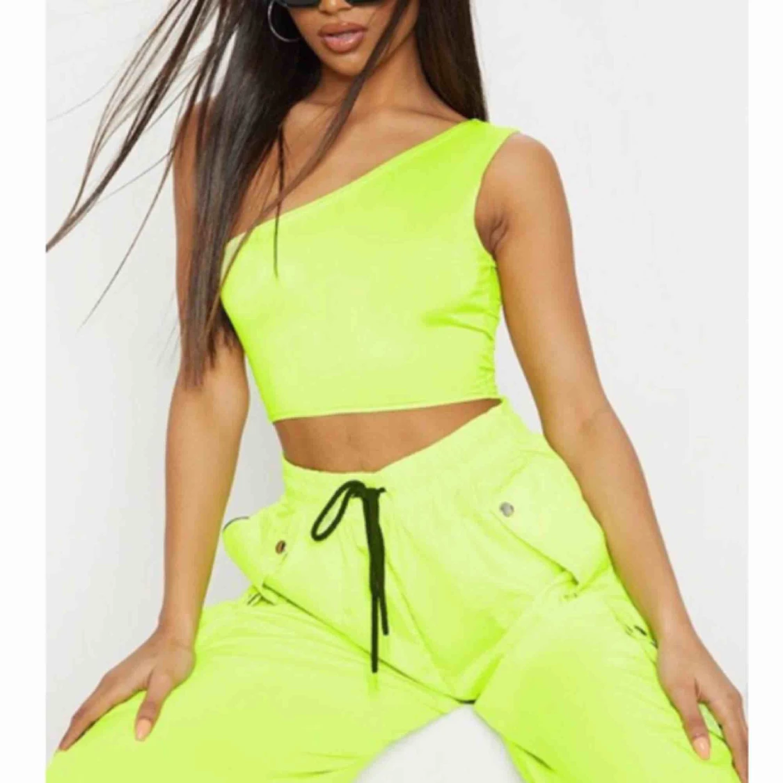 En neon gul/grön topp. Lite genomskinlig, jag skulle ha haft någon slags bh/top under
