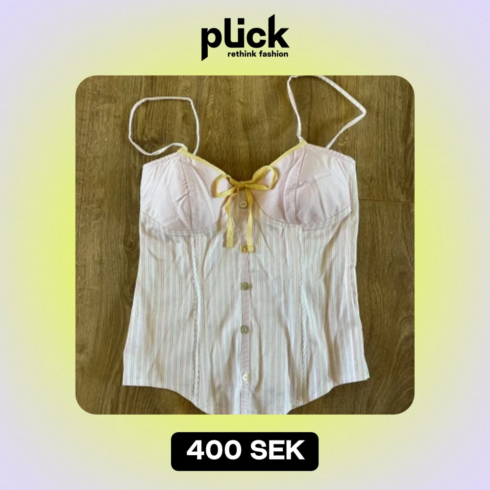 Så fin topp!! Märkt som storlek M men skulle säga att den är S och passar en B-kupa. Knäpps med dragkedja i sidan