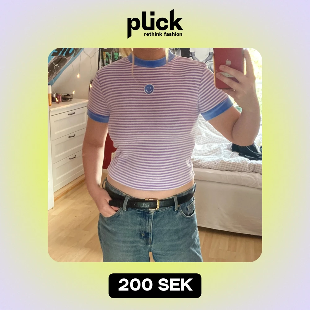 Supersöt randig crop top i sammet från Lazy Oaf! Använd fåtal gånger och passar rätt tight men har lite stretch. Har även en halv-polokrage!