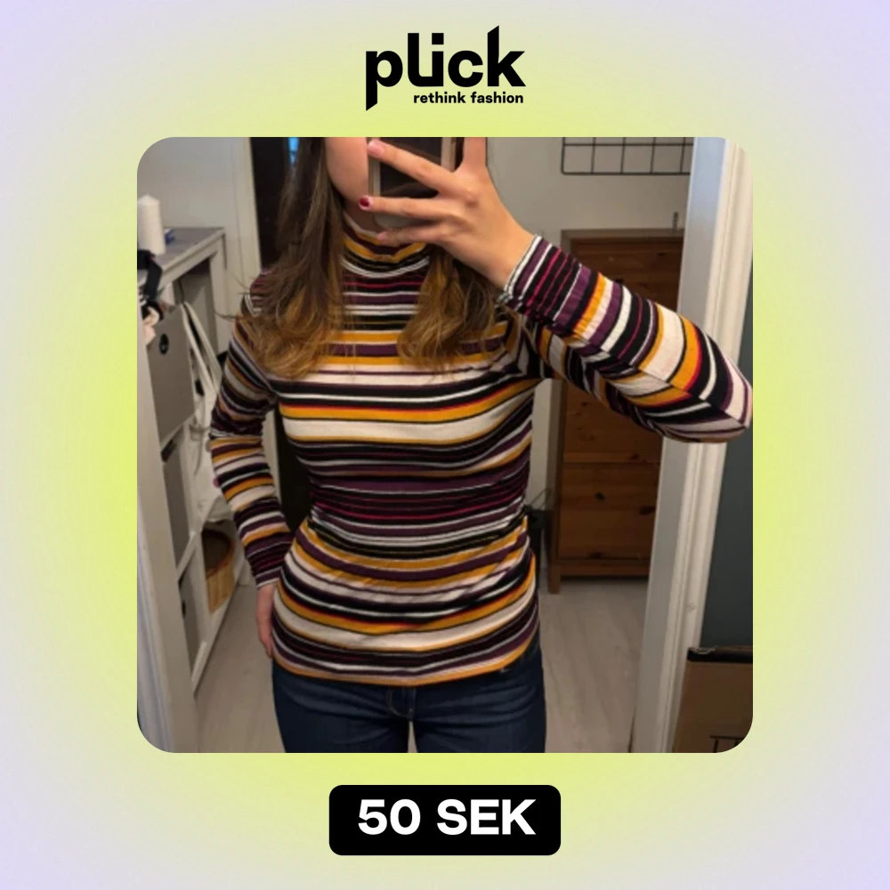 Säljer en superfin randig polotröja från Amisu i storlek M. Tröjan har ett färgglatt mönster med ränder i svart, vit, lila, orange och gul. Den är långärmad och perfekt för höst och vinter. Materialet är mjukt och stretchigt, obs lite noppande