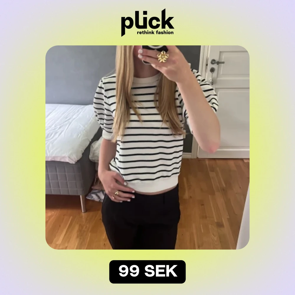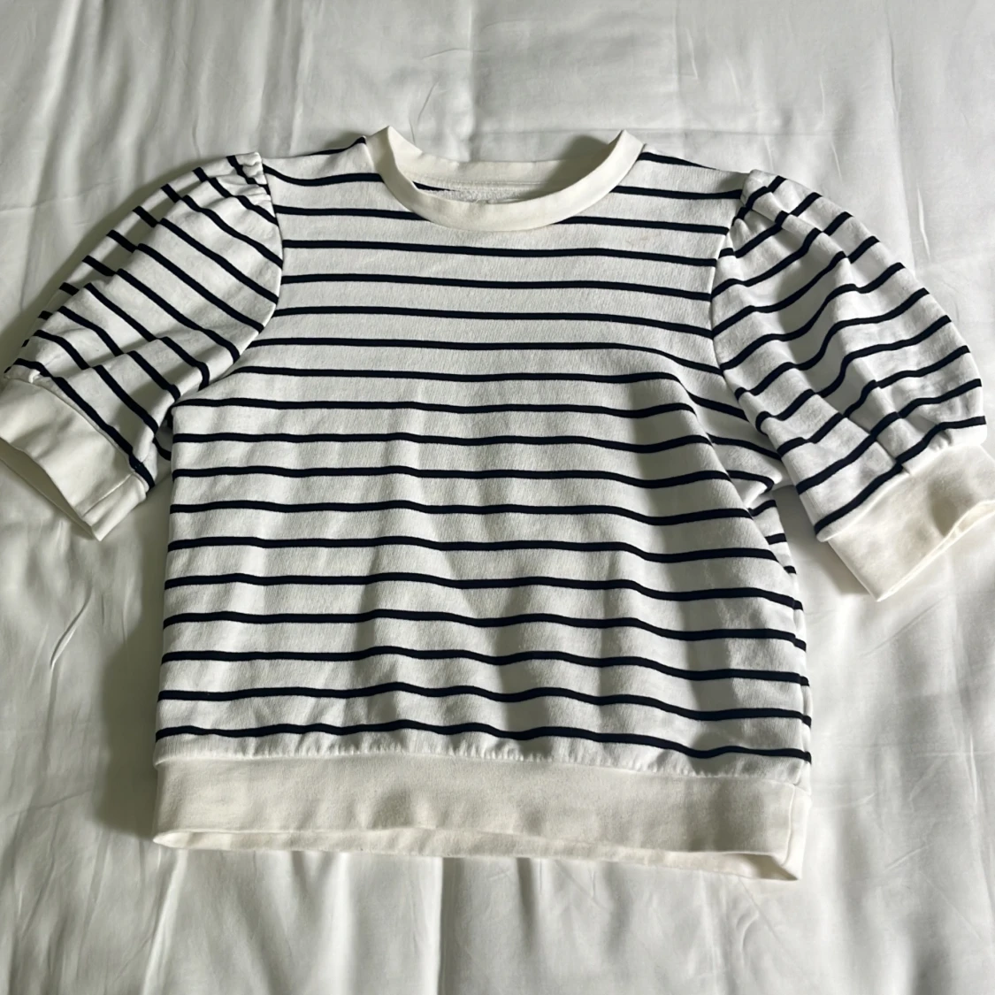 En väldigt gullig svart vit randig topp med puffärmar! Säljer för att den inte kommer till användning längre, inte använt så många gånger!! Inga tecken på några skador eller så💘