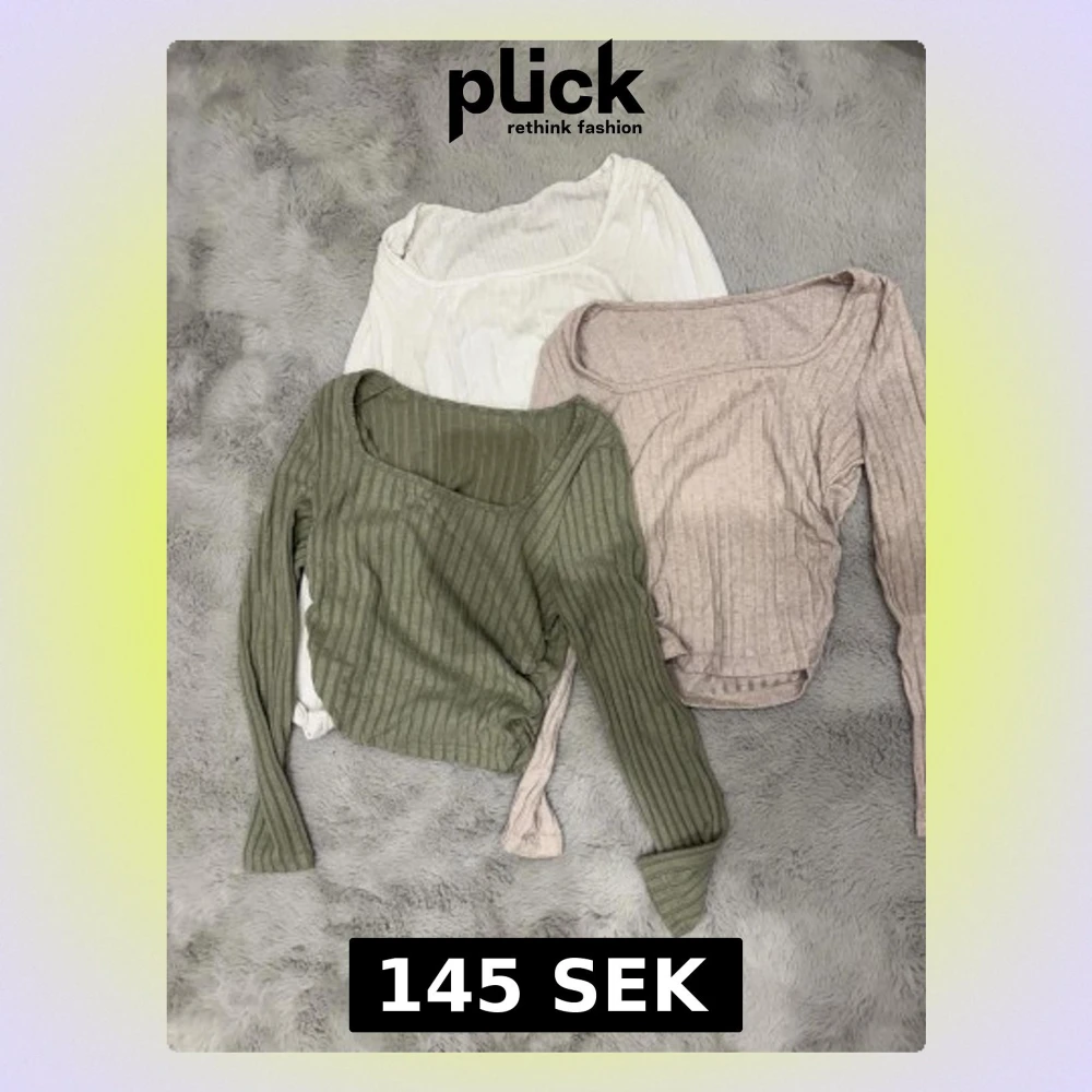 Tre ribbade långärmade toppar med snygg fyrkantig halsringning. Går att diskutera pris vid intresse av att köpa seperat, använda 1-2 gånger🥰🤍