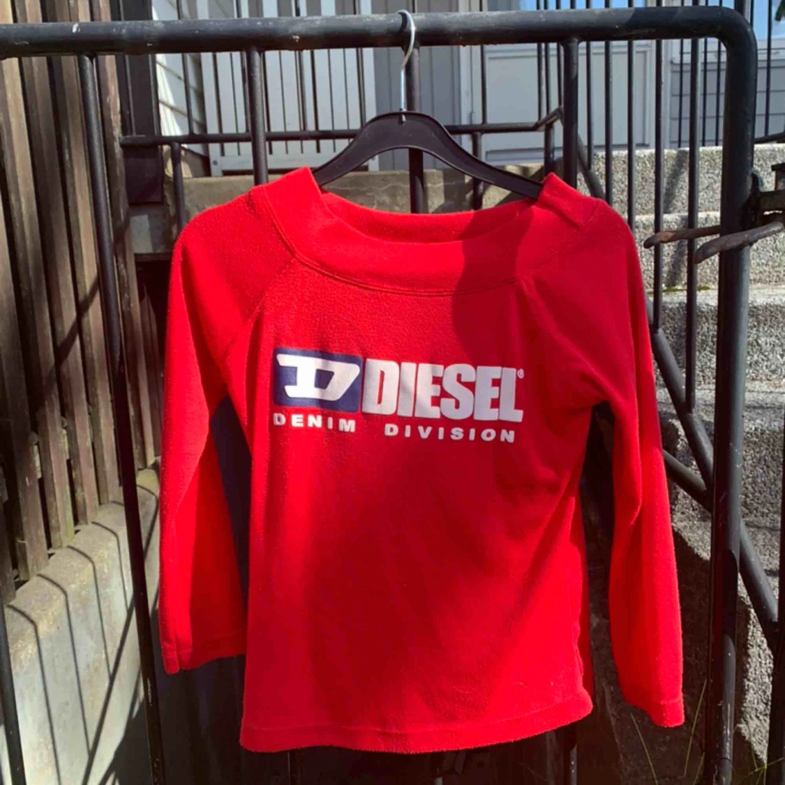 Röd Diesel-tröja. Det står ingen storlek på plagget men jag skulle gissa på XS, möjligtvis S. Jag är 170cm lång för referens. Tröjan är i bra skick. Priset går att diskuteras! :)