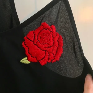 Linne i svalt tyg i storlek XS, men en ros pĂ„ bröstet som jag broderat. Frakten Ă€r inrĂ€knad i priset ❀đŸŒč