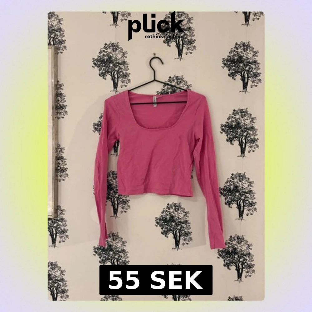 Säljer en rosa croppad topp från H&M med lång ärm och djup rundad halsringning. Enkel och clean design, perfekt att styla med jeans eller kjol. Materialet är mjuk bomull som känns skönt mot huden. Basic-plagg med snygg passform och fräsch färg.