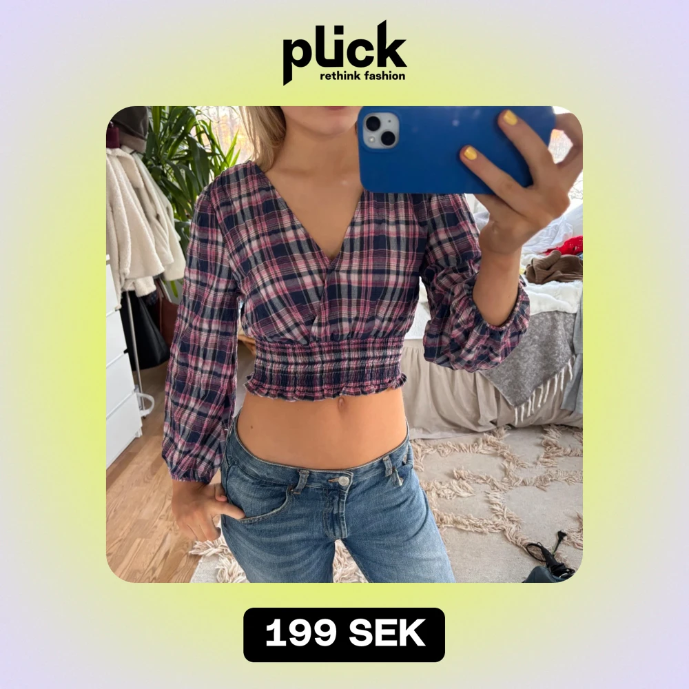 Rutig långärmad topp!