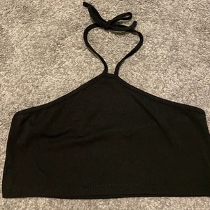 En svart fin topp som har ett knyte runt halsen❤️ storlek s