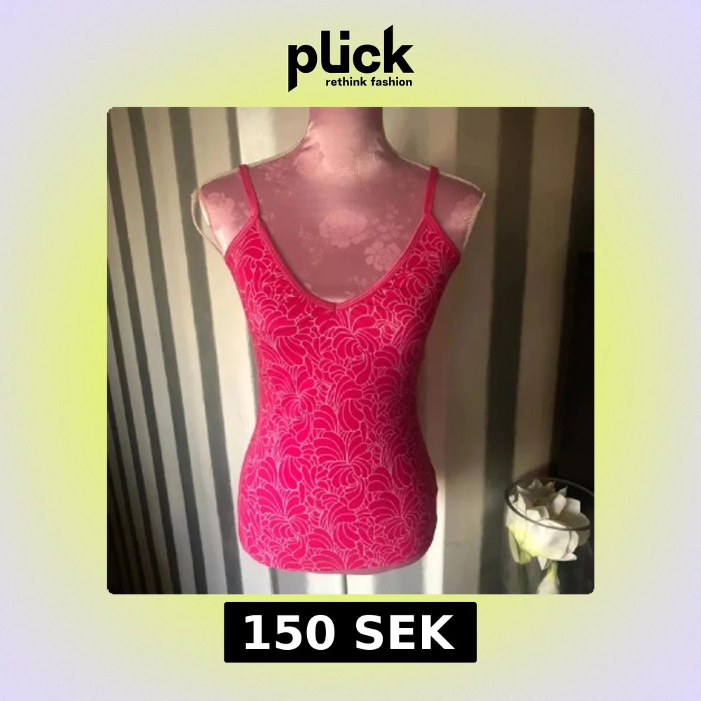 Snygg rosa linnetopp med ett blommigt mönster. Toppen har smala axelband och en v-ringad design som ger en feminin touch. Perfekt för varma dagar eller som ett lager under en jacka. Med inbyggd bh