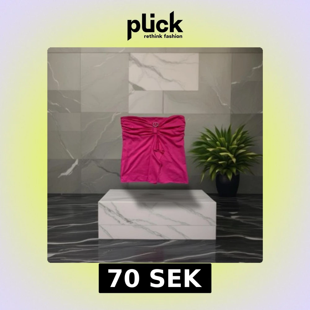 Snygg rosa bandeau tubtopp med ett glansigt tyg och ett dekorativt hjärtformat spänne med pärlor framtill. Toppen har draperad front och en liten volangdetalj som hänger ner. Perfekt för dig som vill sticka ut med en färgstark look.