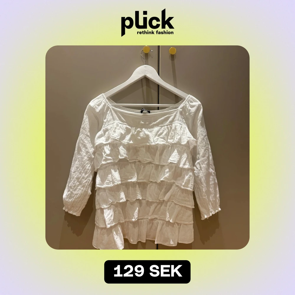 Säljer en superfin vit blus med volanger. Den har trekvartsärmar och en luftig passform, perfekt för vår och sommar. Blusen är i ett lätt och bekvämt material, vilket gör den idealisk för både vardag och festliga tillfällen.