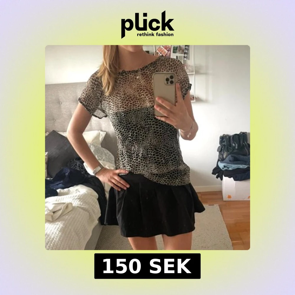 Säljer en snygg leopardmönstrad offshoulder-top med korta ärmar. Toppen har en luftig passform och är perfekt för en trendig look. Passar bra till både kjol och byxor. Jag har även sytt den själv och skulle säga att den passar xs-m, jag själv brukar vanligtvis ha S