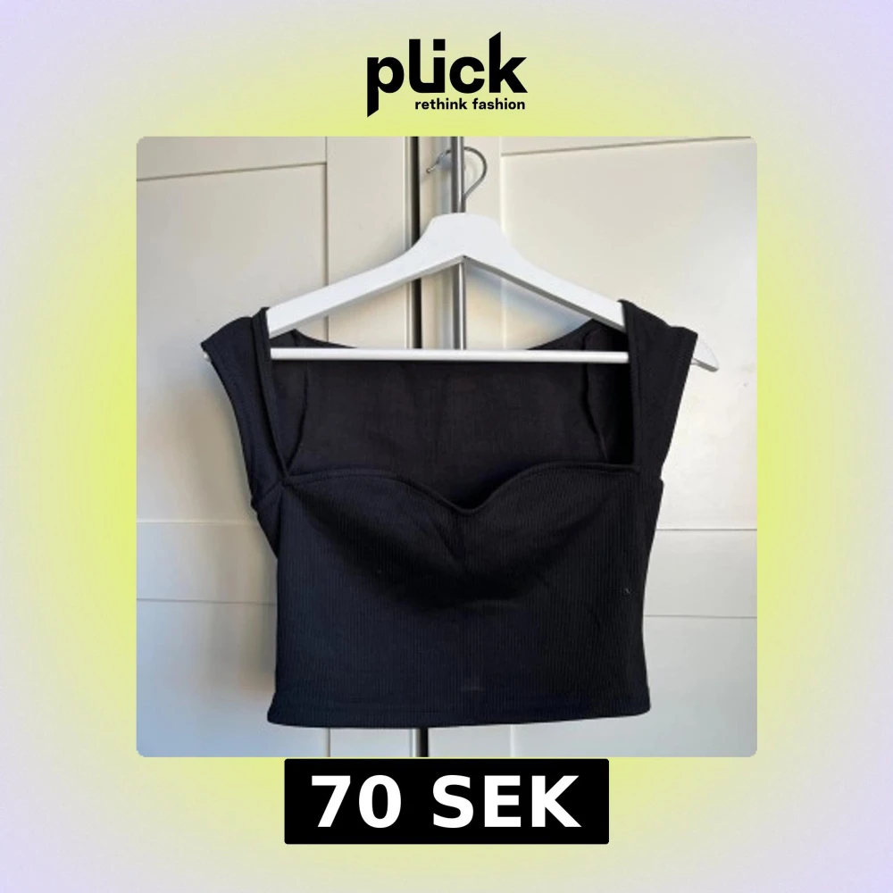 Snygg svart topp med ribbad textur och en stilren design. Toppen har en croppad passform och breda axelband som ger en modern look. Perfekt för att styla med höga jeans eller kjol.
