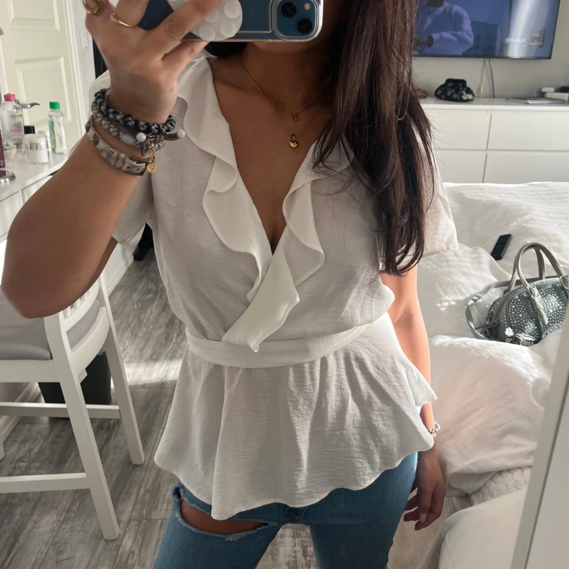 säljer denna vita Volang topp fårn New Look i storlek S. man kan knyta bandet runt midjan lite hur man vill🌸