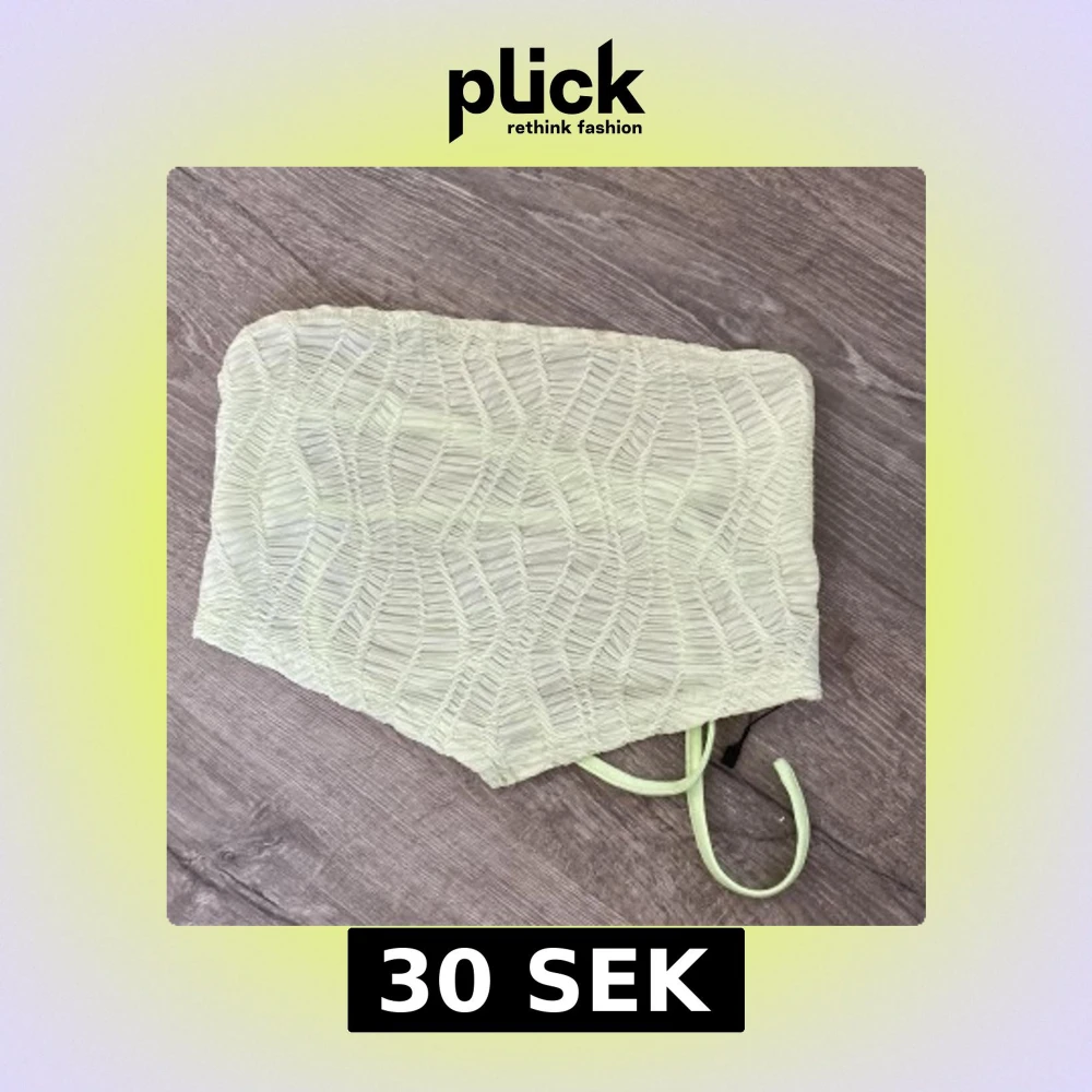 Säljer en ljusgrön tubtopp med ett unikt, veckat mönster.