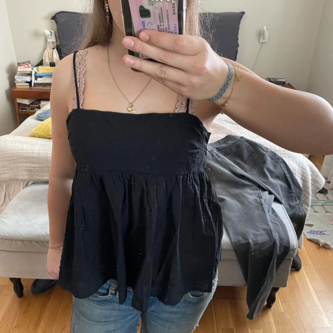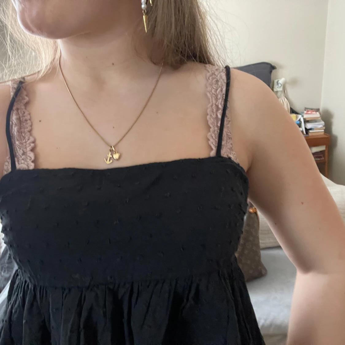 Säljer en svart linnetopp med tunna svarta axelband och en rynkad midja. Toppen har en luftig passform och är perfekt för varma dagar. Snygg att styla med jeans eller kjol. Står ingen strlk men passar fint pp mig som har S❣️❣️