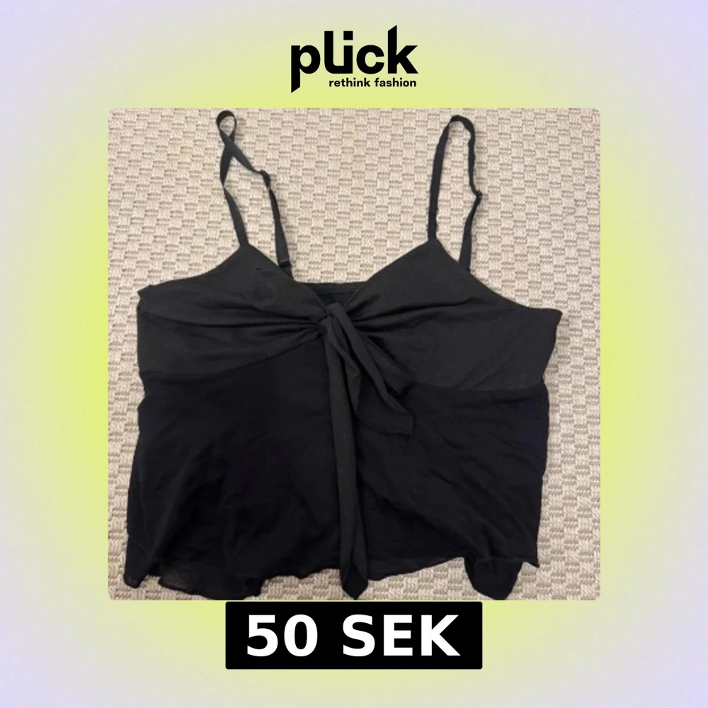 Svart croppad linnetopp med smala justerbara axelband och snygg knytning framtill. Toppen är ärmlös och har en enkel, stilren look som passar perfekt till jeans eller kjol. Mjuk och lätt bomullskänsla för chill vibe.