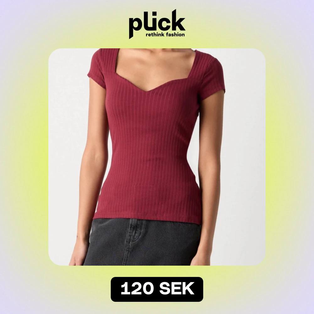 Snygg vinröd ribbad topp med korta ärmar och en v-ringad design. perfekt för både vardag och fest💌