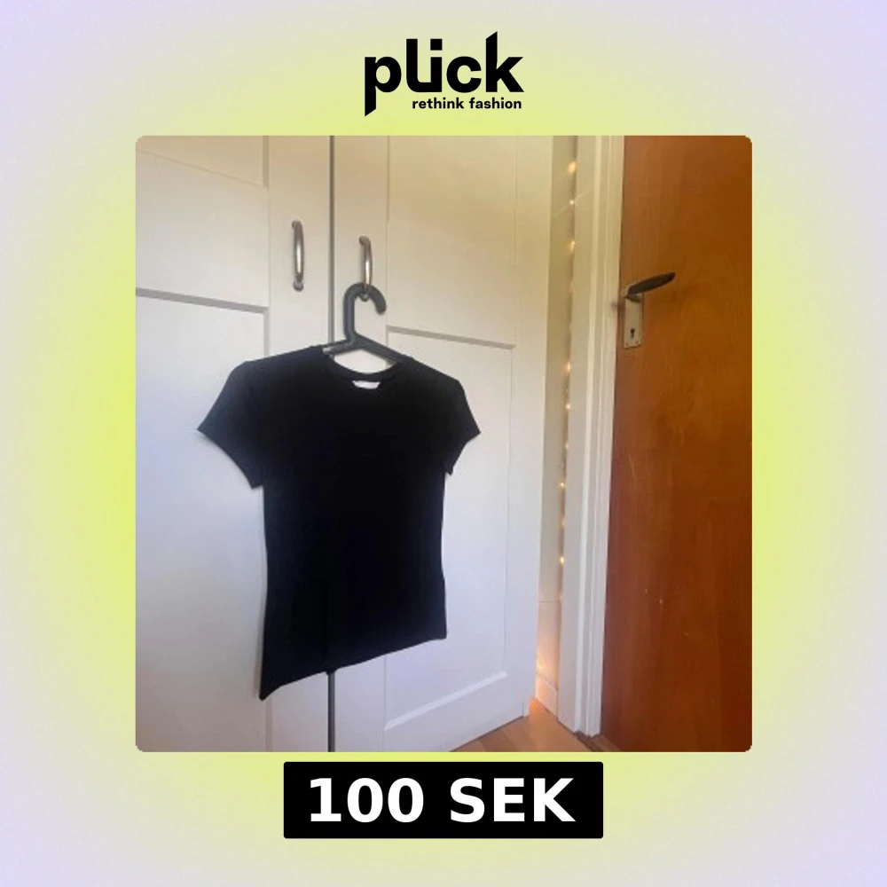 En svart, enkel och tight topp från H&M i storlek S. Modellen är klassisk med rund halsringning och korta ärmar. Perfekt att styla med jeans eller kjol för en clean look. Materialet är mjukt och stretchigt för en bekväm passform, använt fåtal gånger 💖
