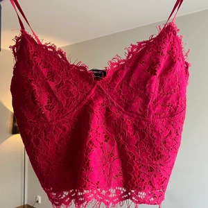 Ljusrosa volang topp med knyt - Supersöt ljusrosa topp med volanger och knyt framtill. Croppad modell med tunna axelband och romantiska detaljer. FrÄn new yorker, jÀttebra skick helt slutsÄld