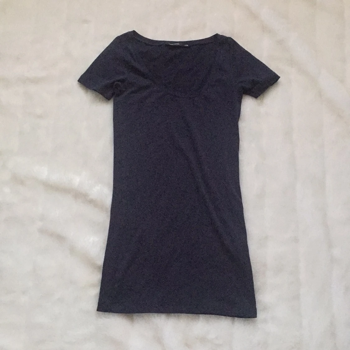 Marinblå basic t-shirt från Samsoe Samsoe. Oanvänd. Stretch. Nypris 299kr. Finns även i grå och nougat.