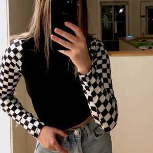 Rätt kort topp köpt från shein med rutiga ärmar. Polo-ish krage men inget märkvärdigt. Liten i storleken❤️