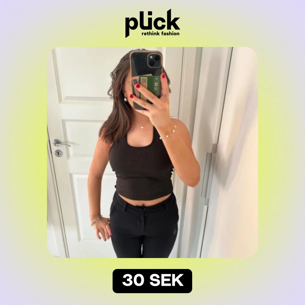 Säljer en snygg svart ribbad topp som är croppad. Toppen går ihop bakom nacken och är öppen i ryggen. Den passar perfekt att ha både på en varm sommardag eller på en fest! Skriv till mig om du har några frågor💖🥰