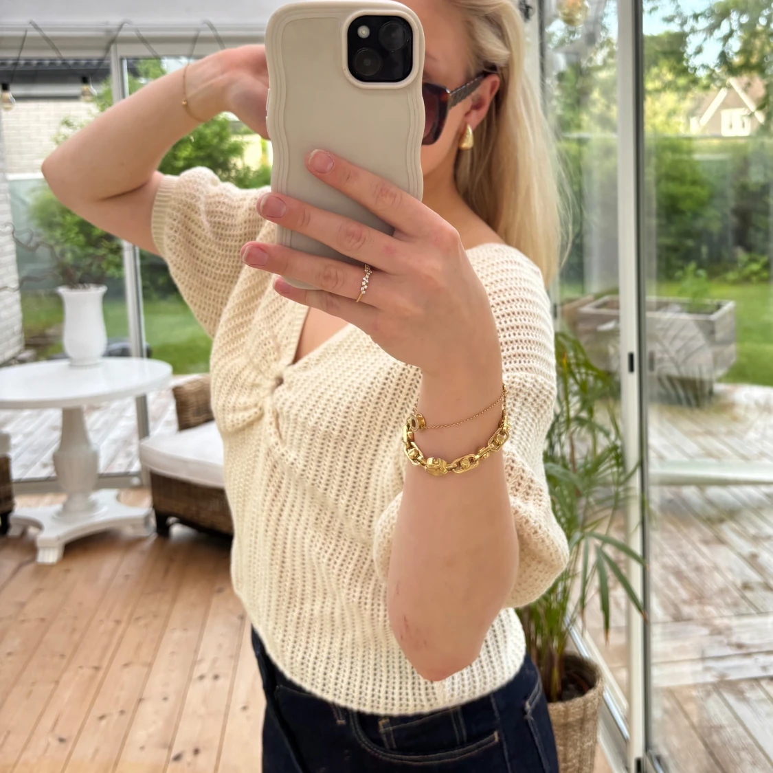 Säljer en stickad cremefärgad topp från Lindex som inte längre kommer till användning 🧡 Storlek Xs men upplevs som S!