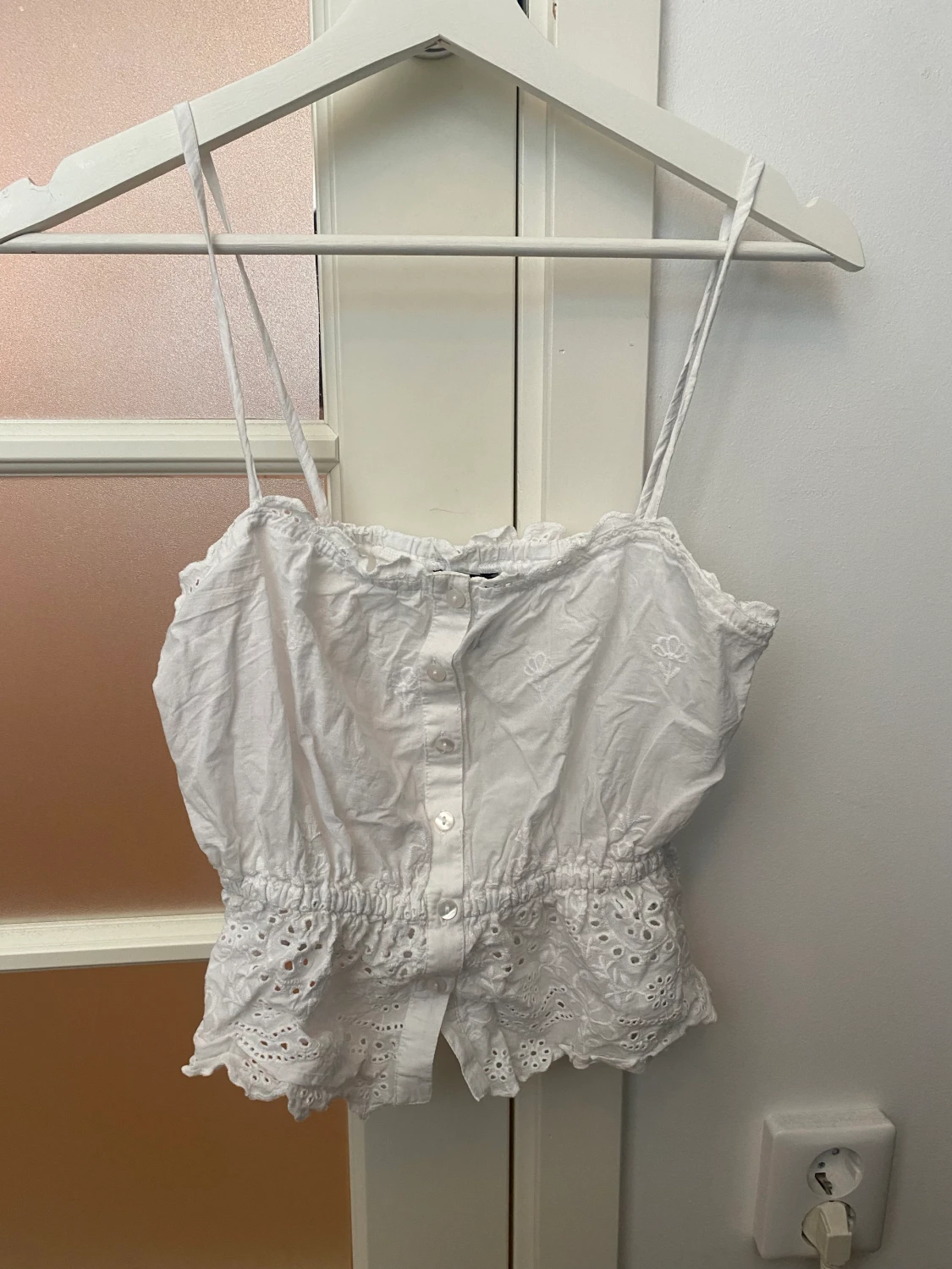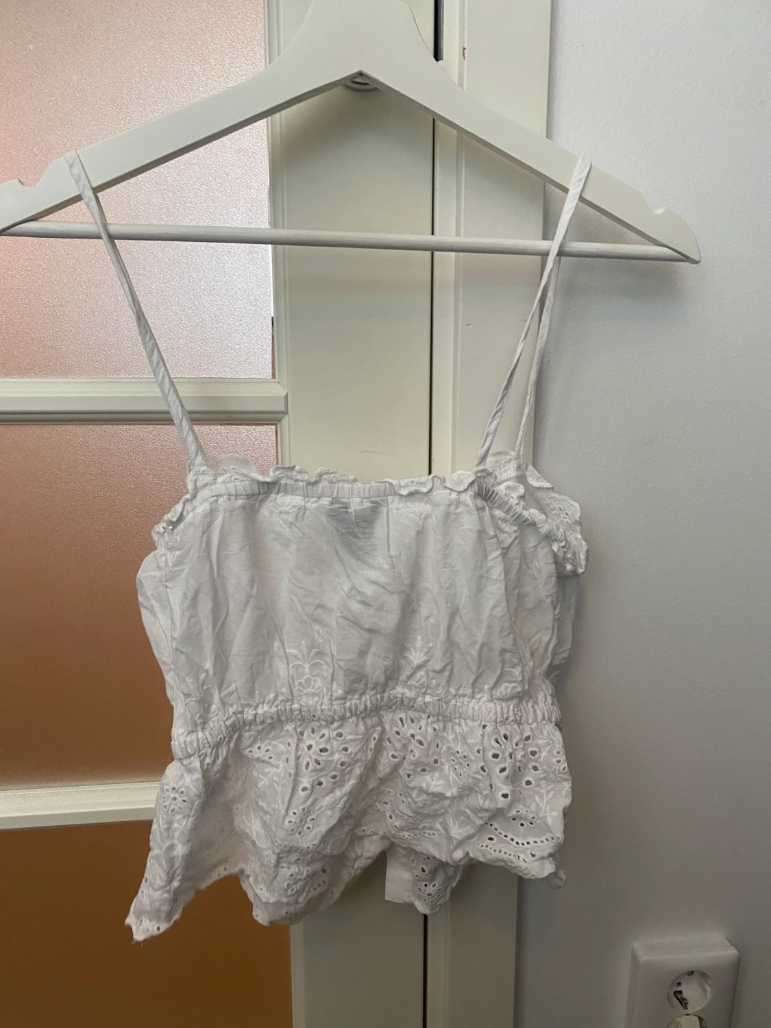 Jätte gullig sommar topp med lite blommigt mönster. Aldrig använd då den var för liten när jag köpte den och glömde lämna tillbak.