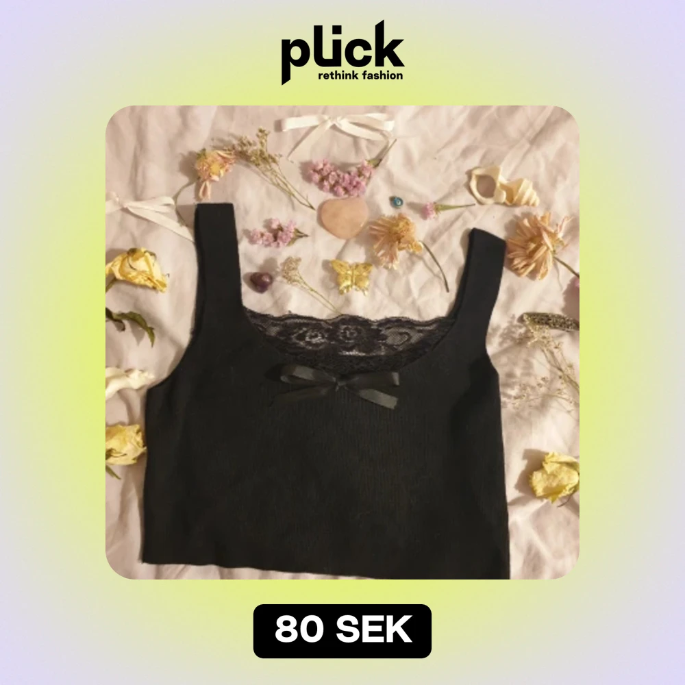 Svart spetsig blus med volanger🎀 - Säljer en svart blus med spets och stora volanger framtill. Toppen har v-ringad hals och är ärmlös med breda axelpartier. Detaljerad spets och ribbad nederkant ger en cool och romantisk vibe. Perfekt för dig som gillar statement-plagg!