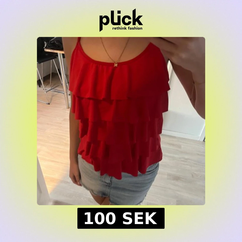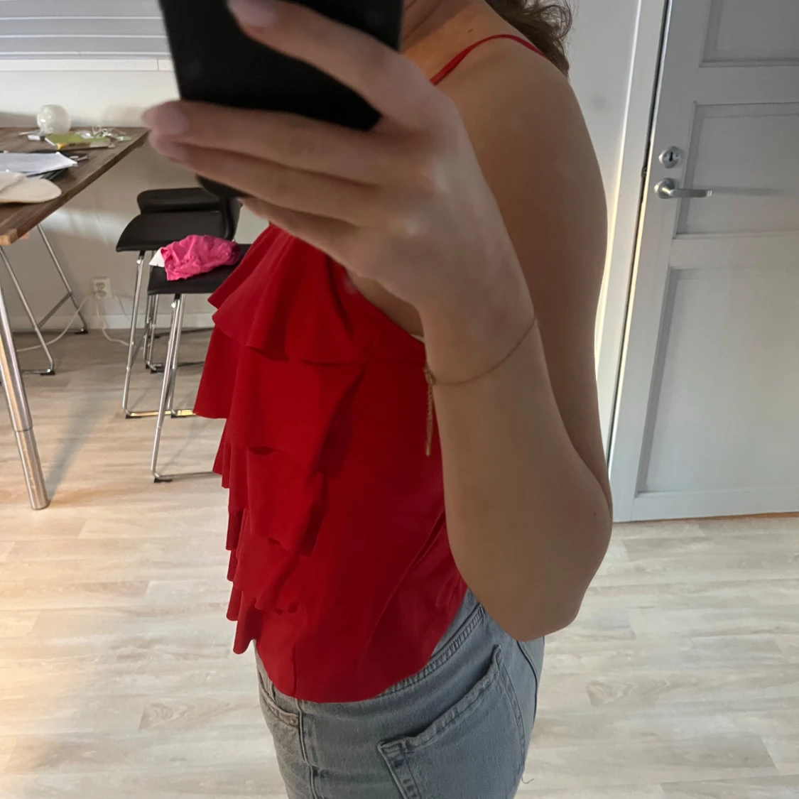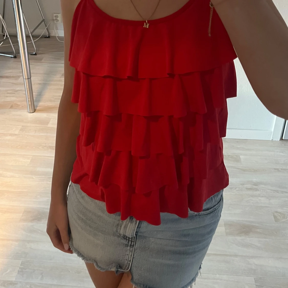 Snygg röd topp med volanger. Aldrig använd och lappen är kvar. Köpt på missay! Kom privat vid fler frågor, kan gå ner i pris vid snabb affär!💓nypris 229kr, mitt pris 50